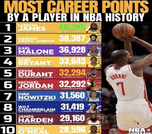 NBA历史球员生涯总得分排行榜